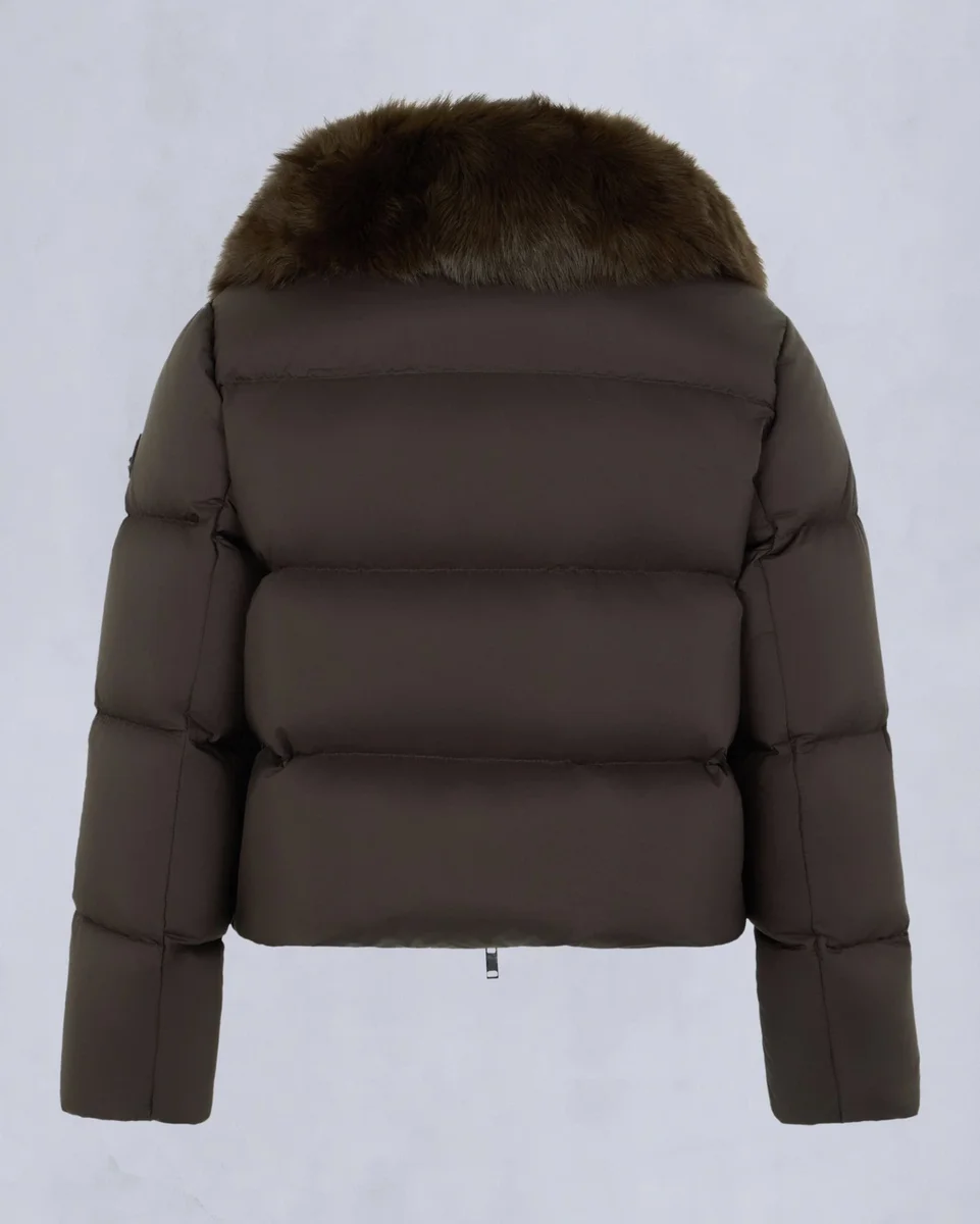 Belle Dune Kurze Daunenjacke mit Lammfellbesatz