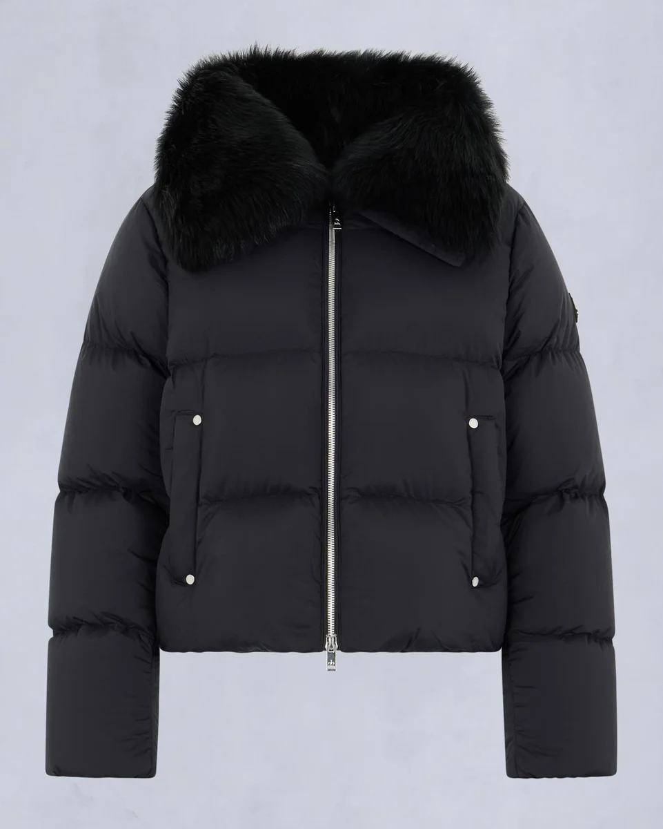 - Abnehmbarer Schaffellkragen
