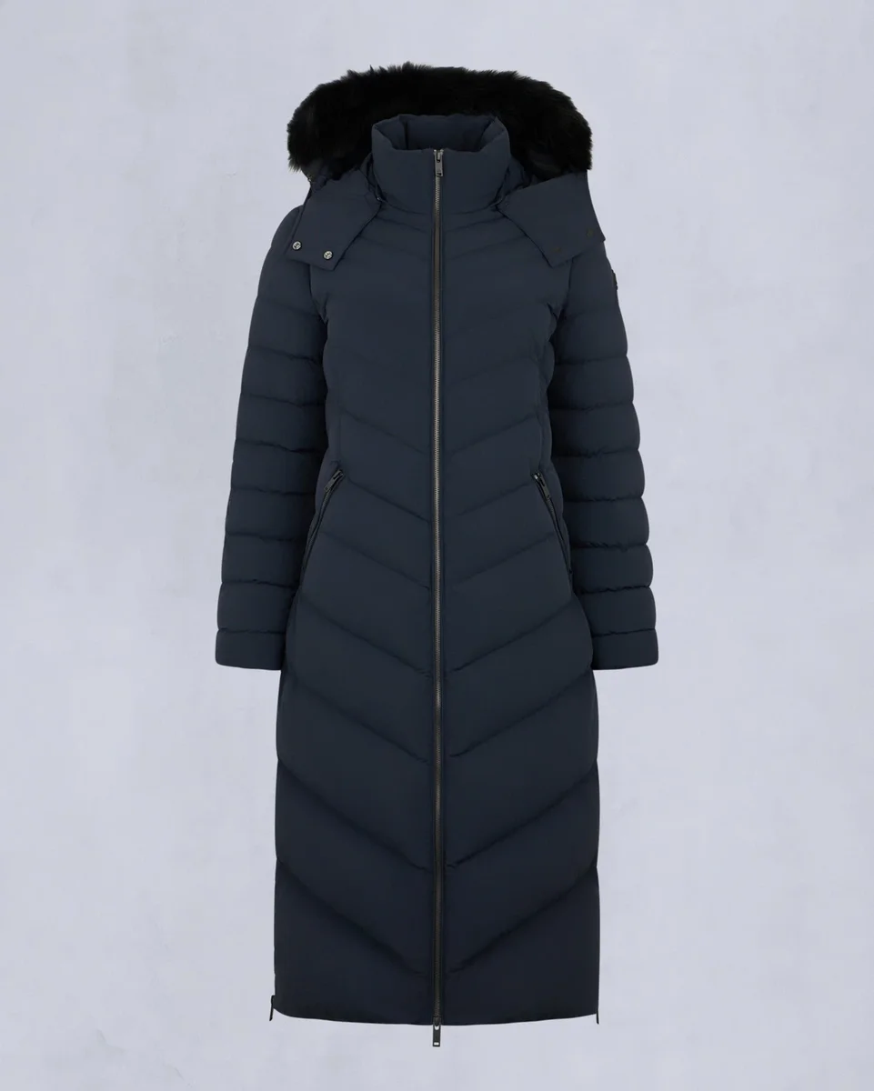 Dank seiner längeren, knielangen Silhouette und der weichen 90/10-Daunenfüllung sorgt der Cooper Lake Shearling Parka an kalten Tagen für angenehme Wärme. Dieser wasserabweisende