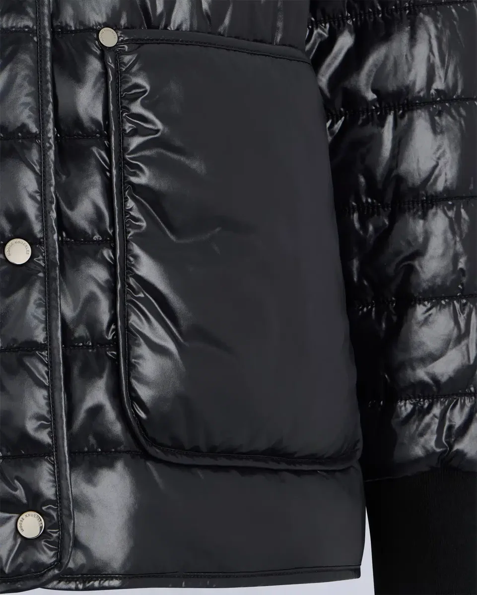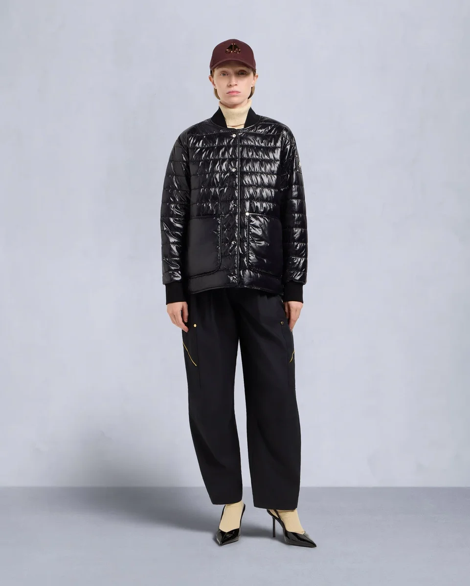 Entfernen Sie vor dem Reinigen die abnehmbaren Verzierungen. Innenseite nach außen aufhängen und schonend chemisch reinigen. Bügeln bei maximal 110 °C ohne Dampf.