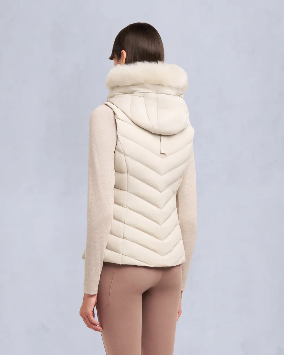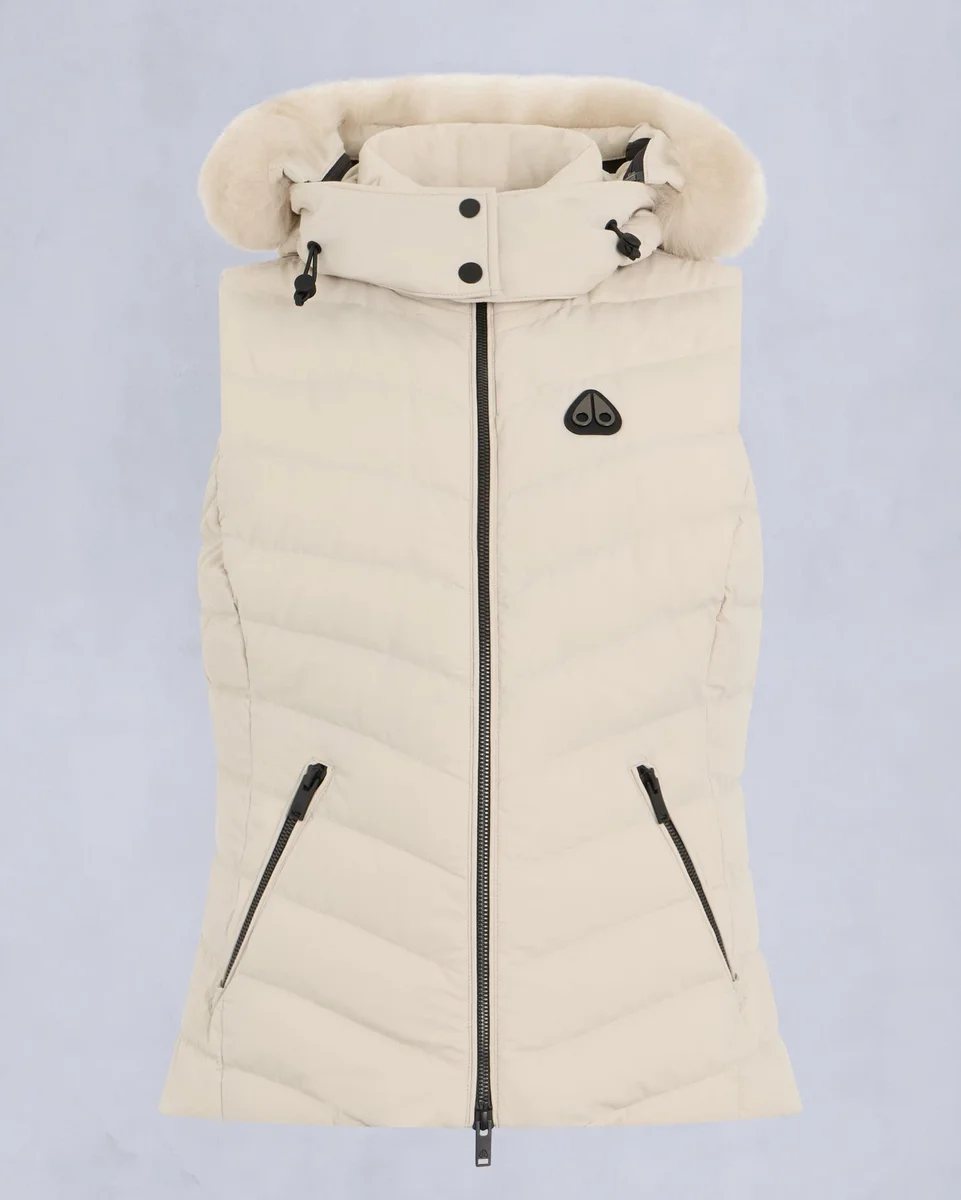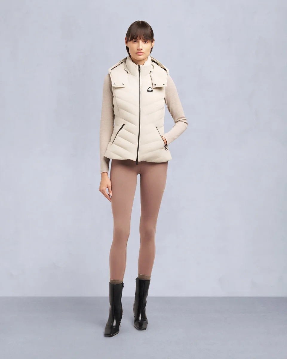 Sportlich und schick zugleich: die mit Daunen gefüllte, wasserabweisende und winddichte Elora Weste. Mit ihrem dehnbaren Material ist sie wie geschaffen für aktive Abenteuer und den Alltag in der Stadt.