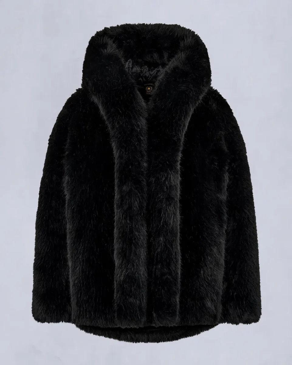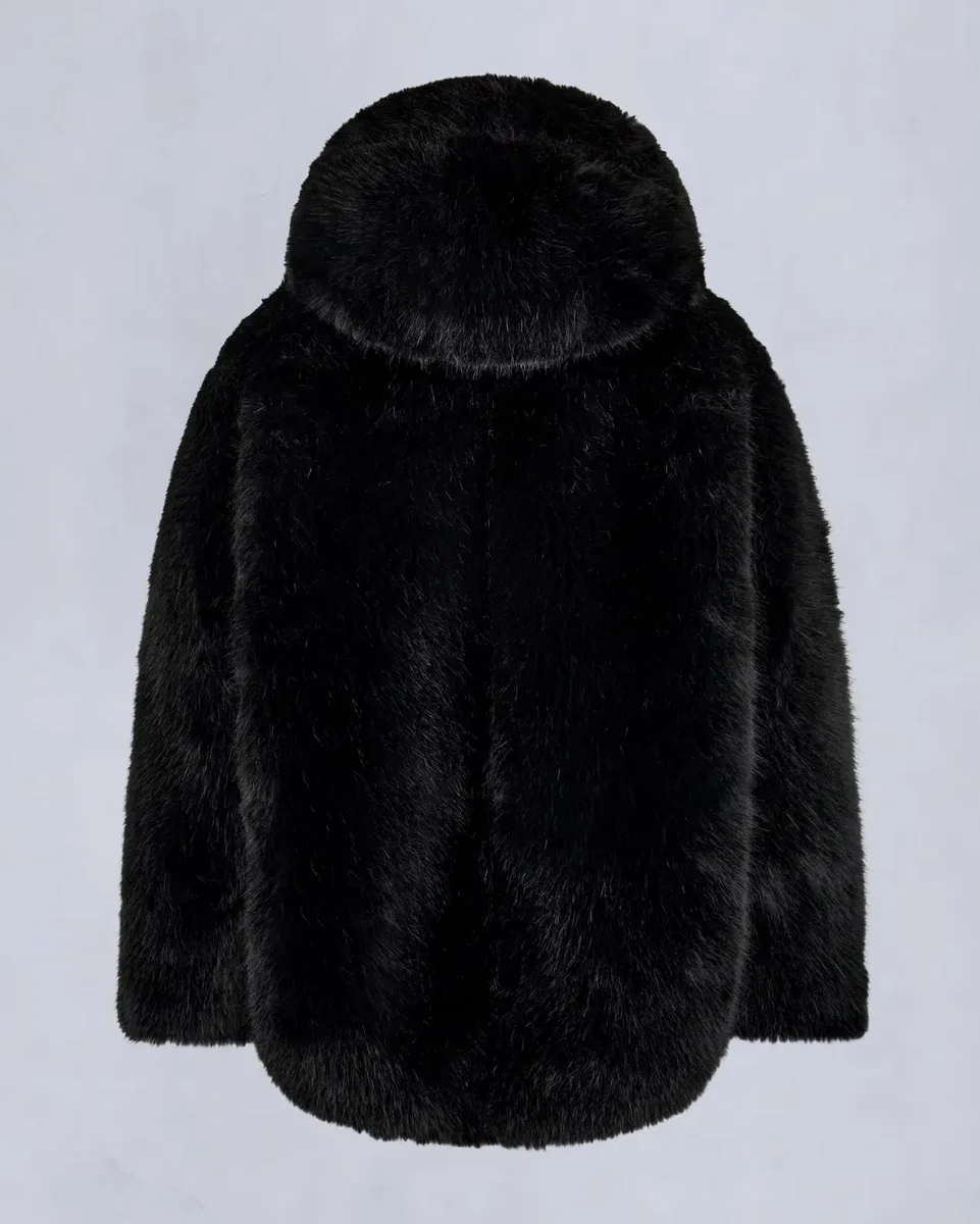 • Angenähte Kapuze, abnehmbare Pompons aus hochflorigem Kunstfell