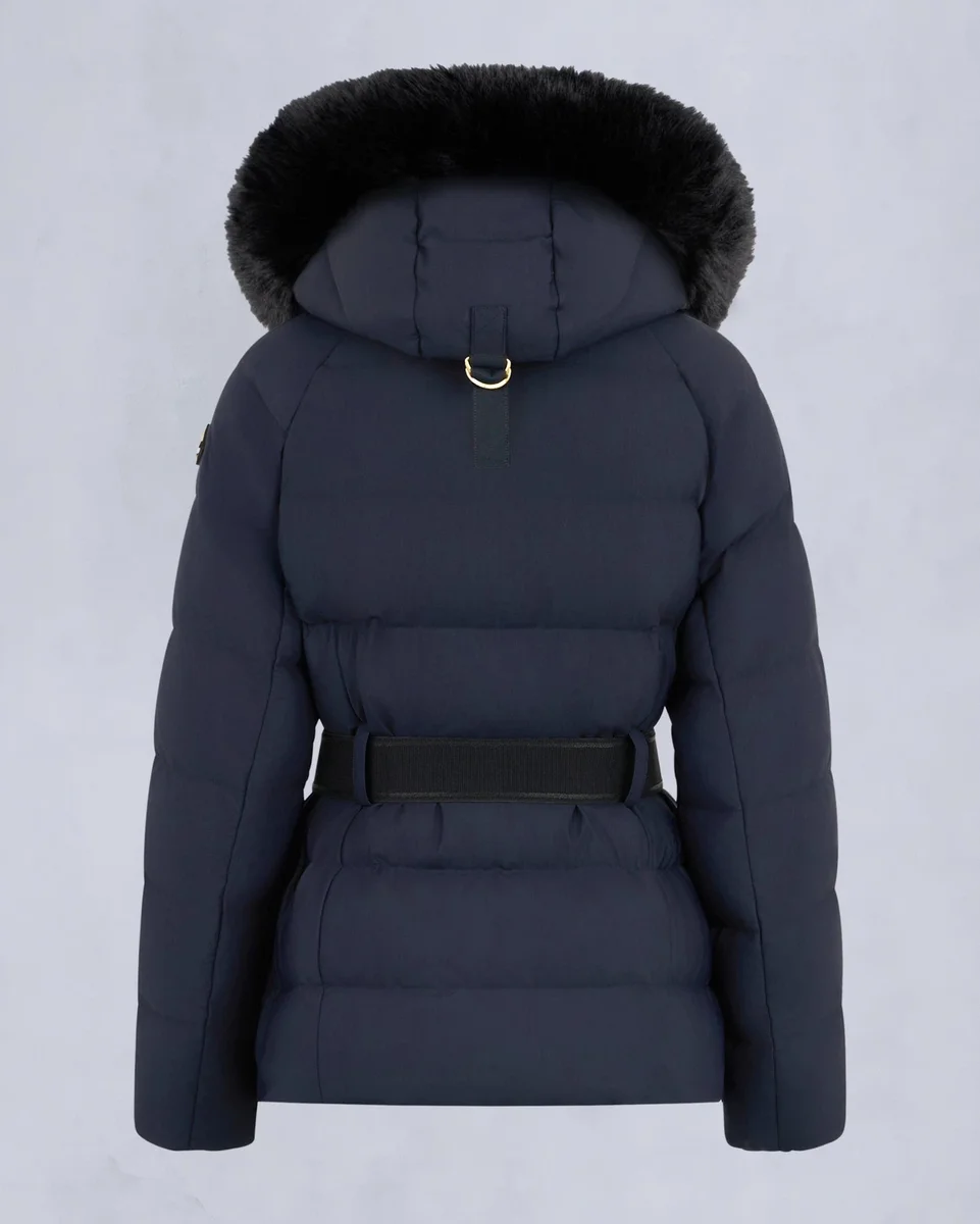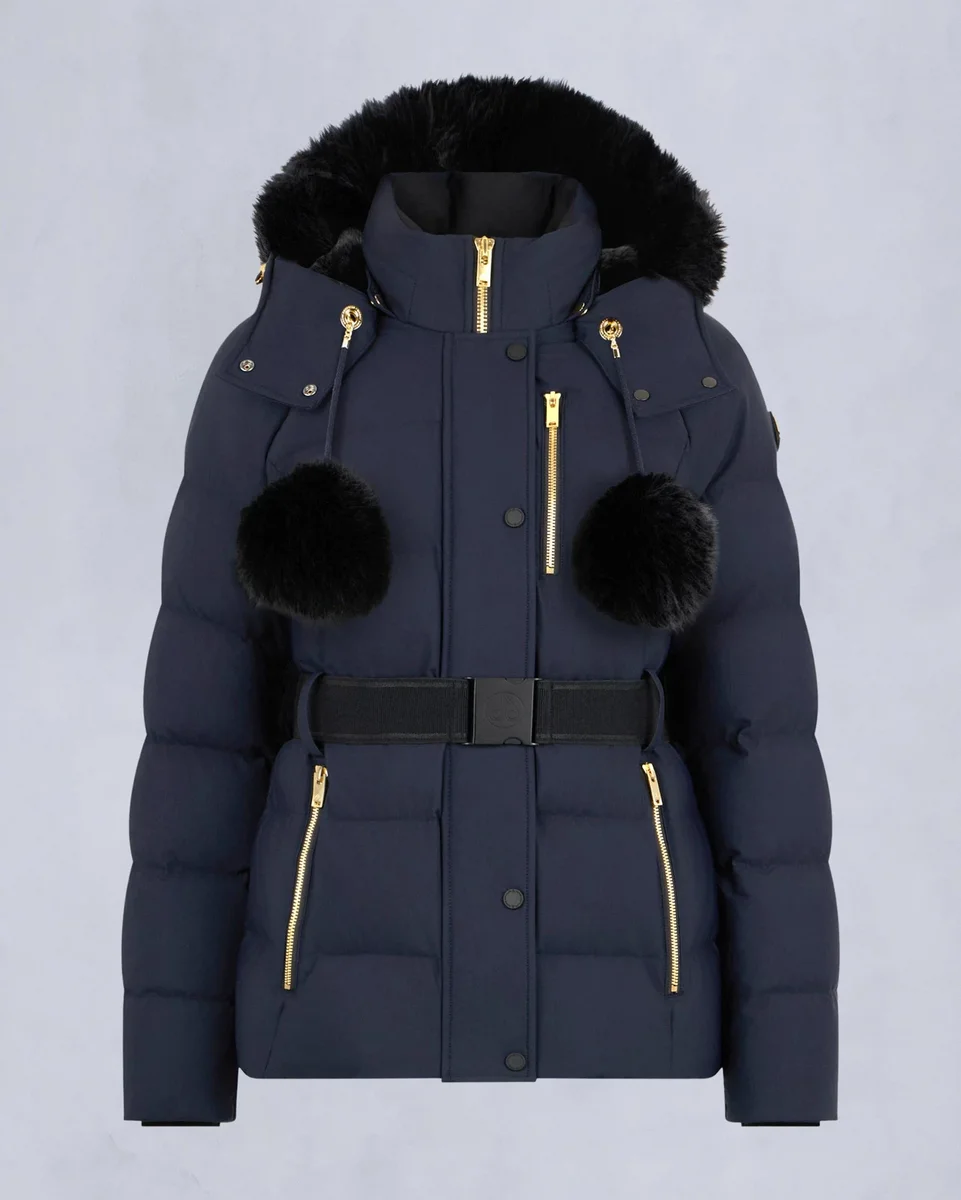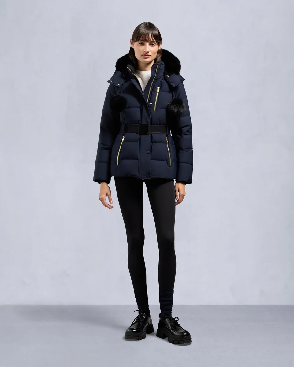 - Abnehmbare Kapuze mit abnehmbarem Lammfellbesatz und Bommeln