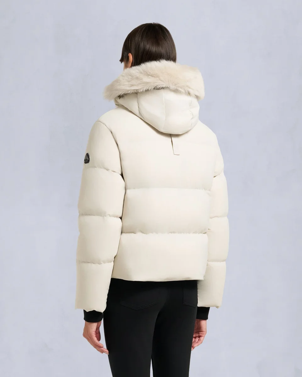 - Abnehmbare Kapuze mit abnehmbarem Lammfellbesatz