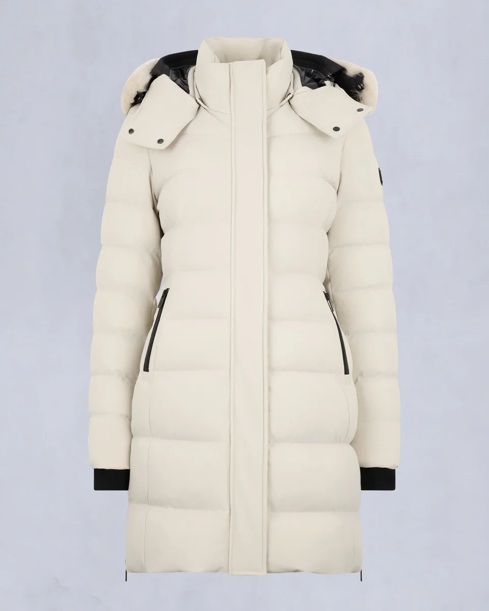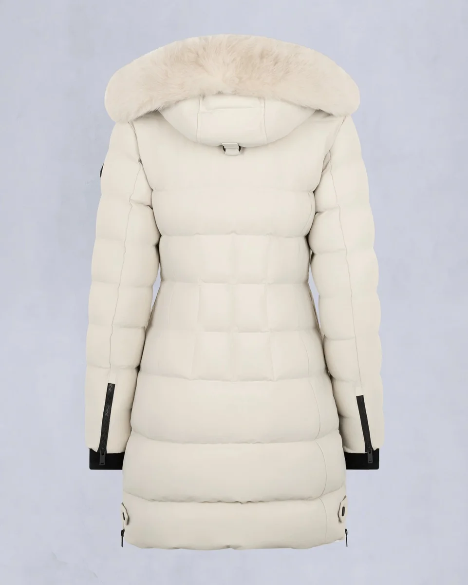 - Abnehmbare Kapuze mit abnehmbarem Lammfellbesatz