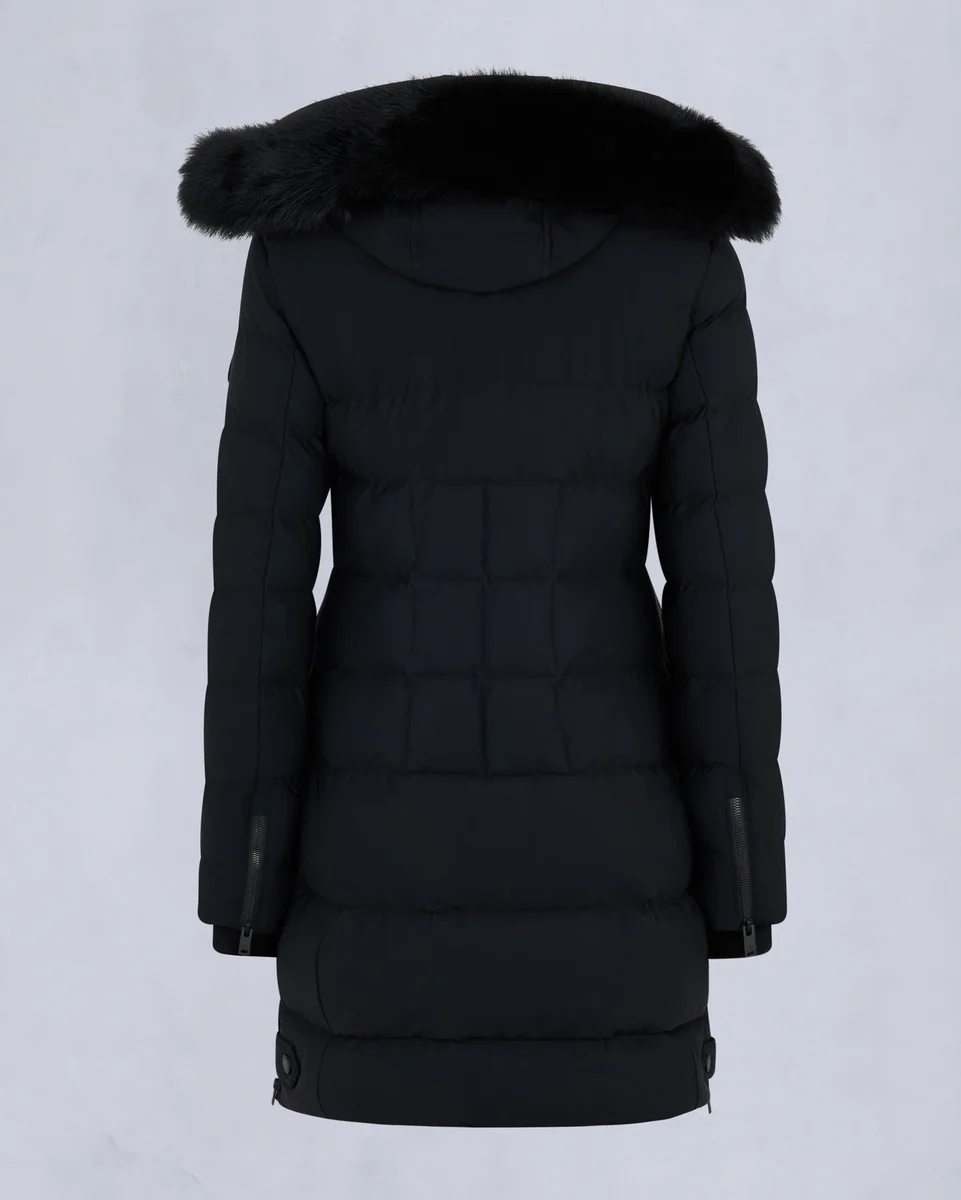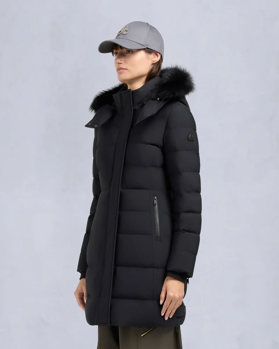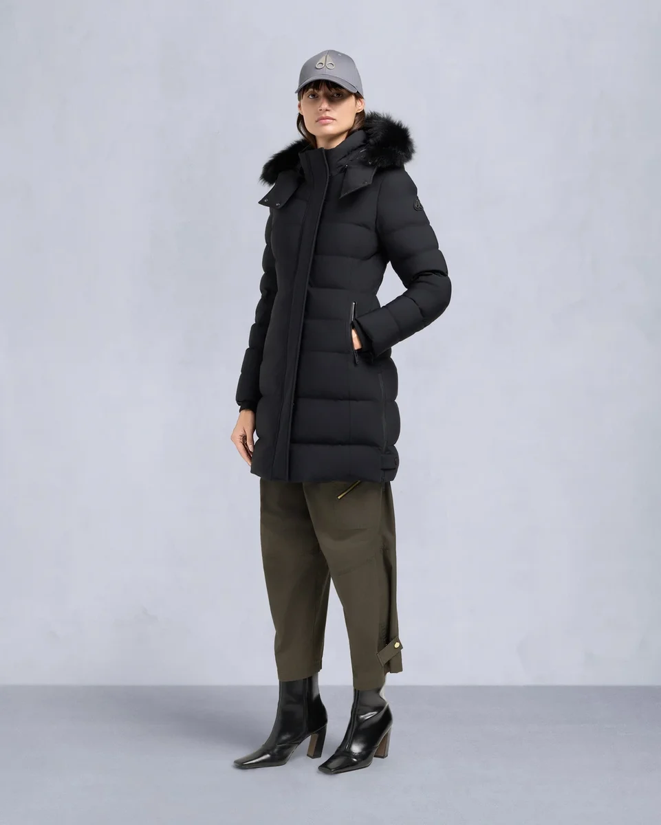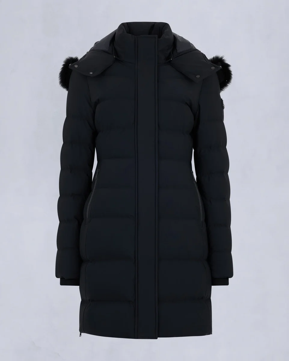 - Abnehmbare Kapuze mit abnehmbarem Lammfellbesatz
