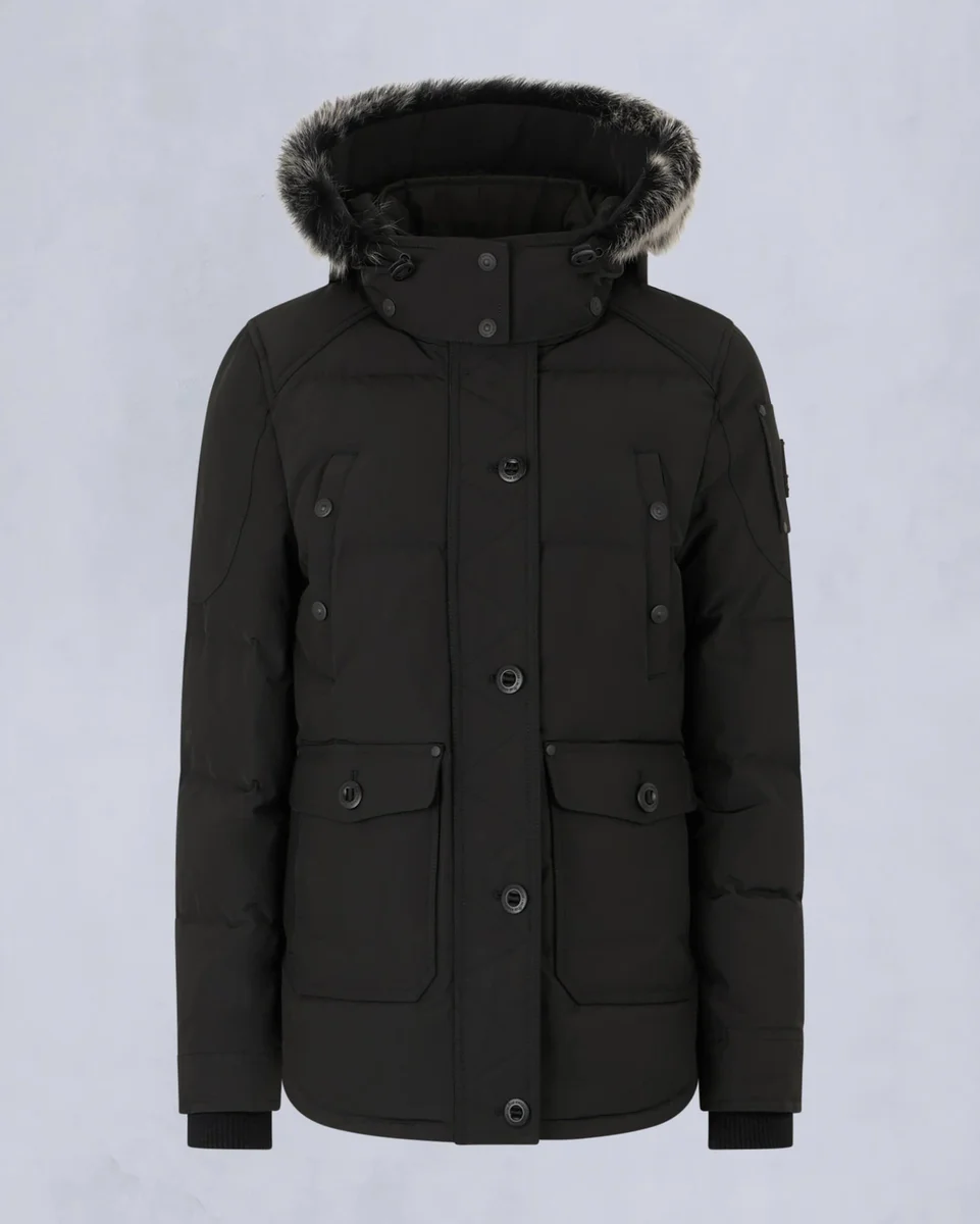 - Abnehmbare Kapuze mit Lammfellbesatz