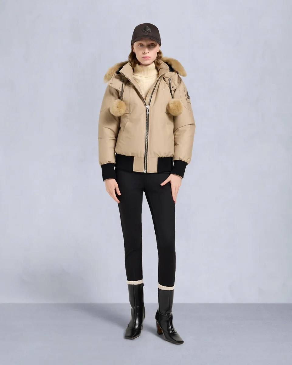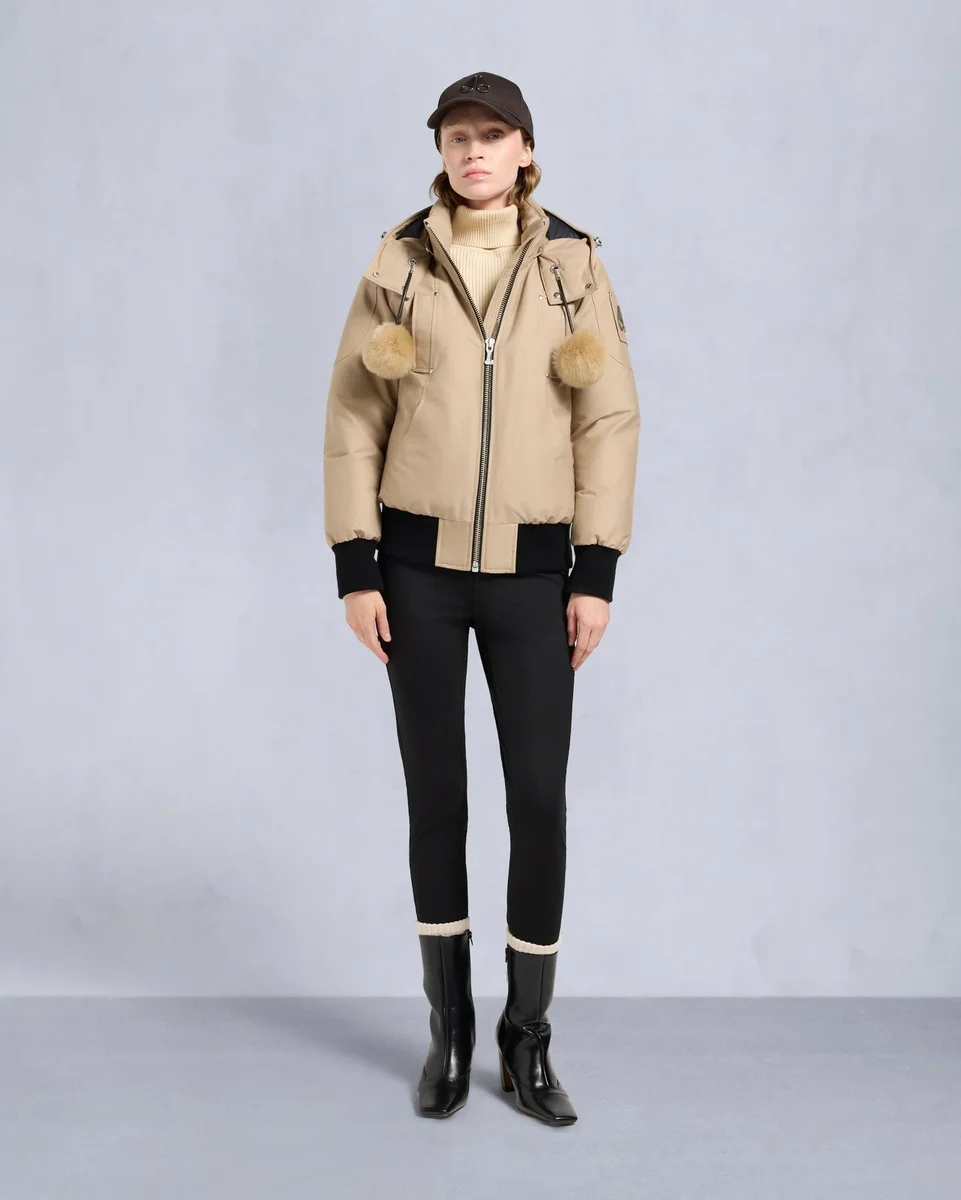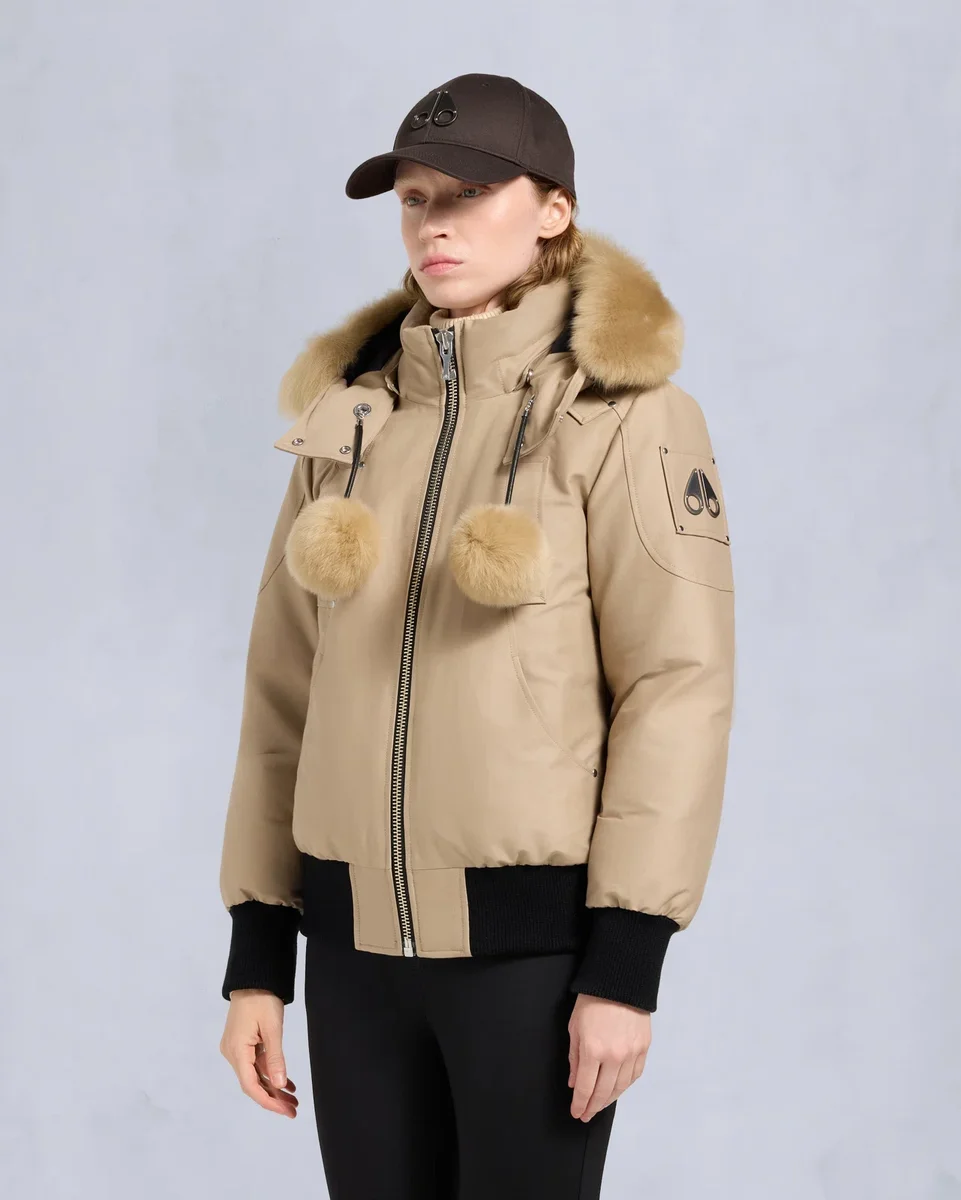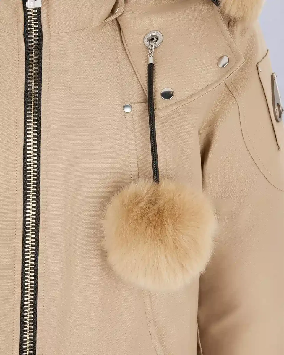 - Abnehmbare Kapuze mit abnehmbarem Lammfellbesatz und Bommeln