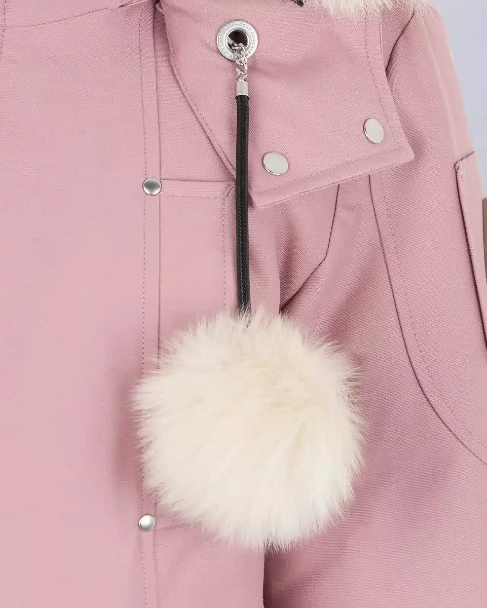• Abnehmbare Kapuze mit abnehmbarem Lammfellbesatz und Bommeln