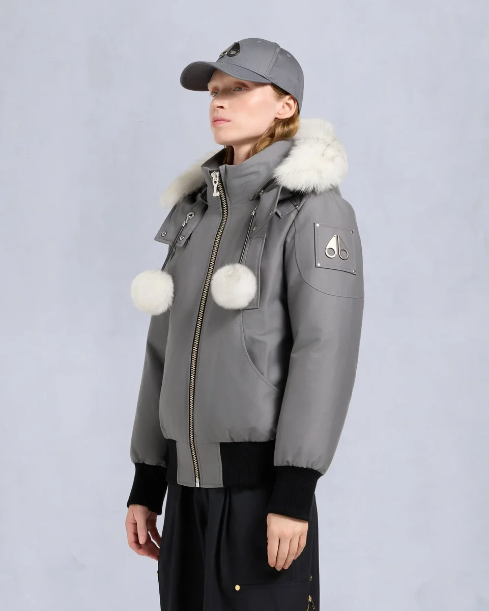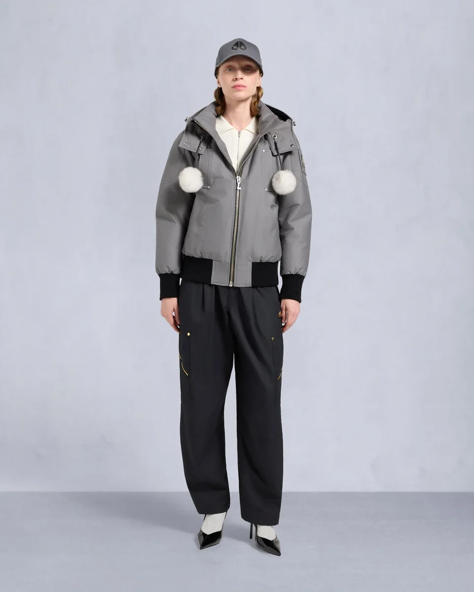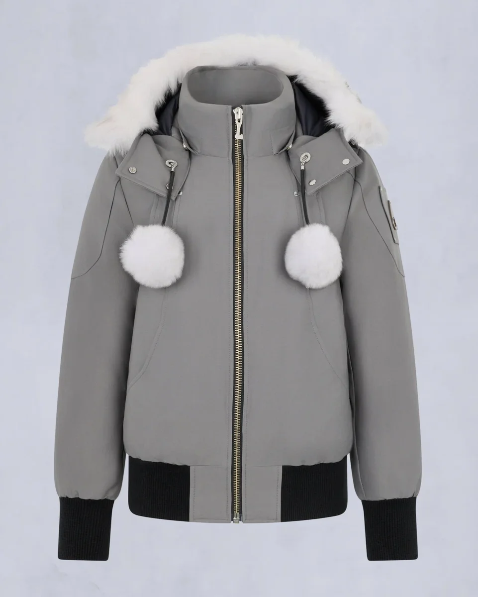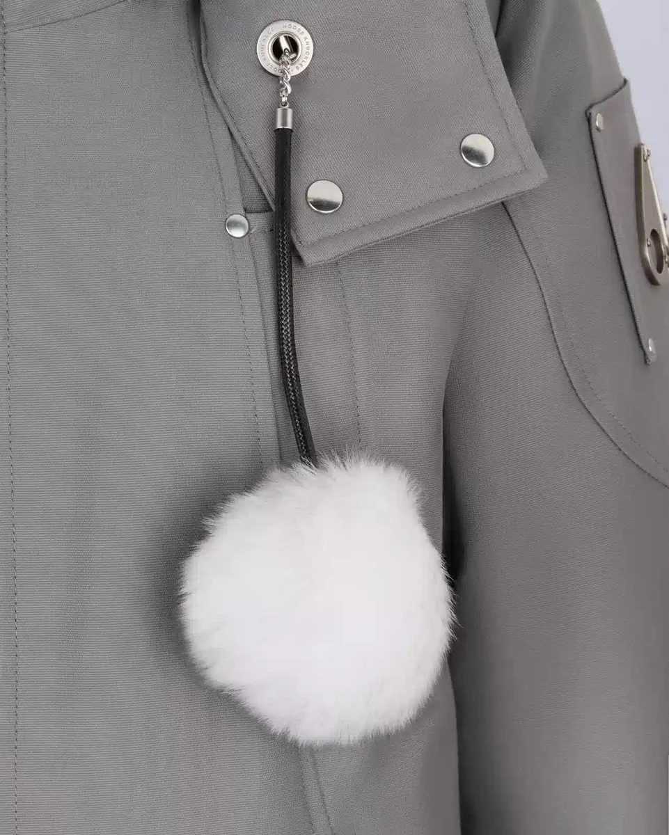 - Abnehmbare Kapuze mit abnehmbarem Lammfellbesatz und Bommeln