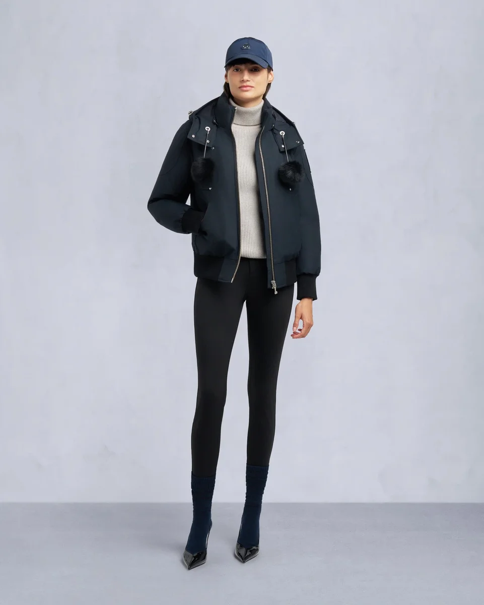 - Abnehmbare Kapuze mit abnehmbarem Lammfellbesatz und Bommeln