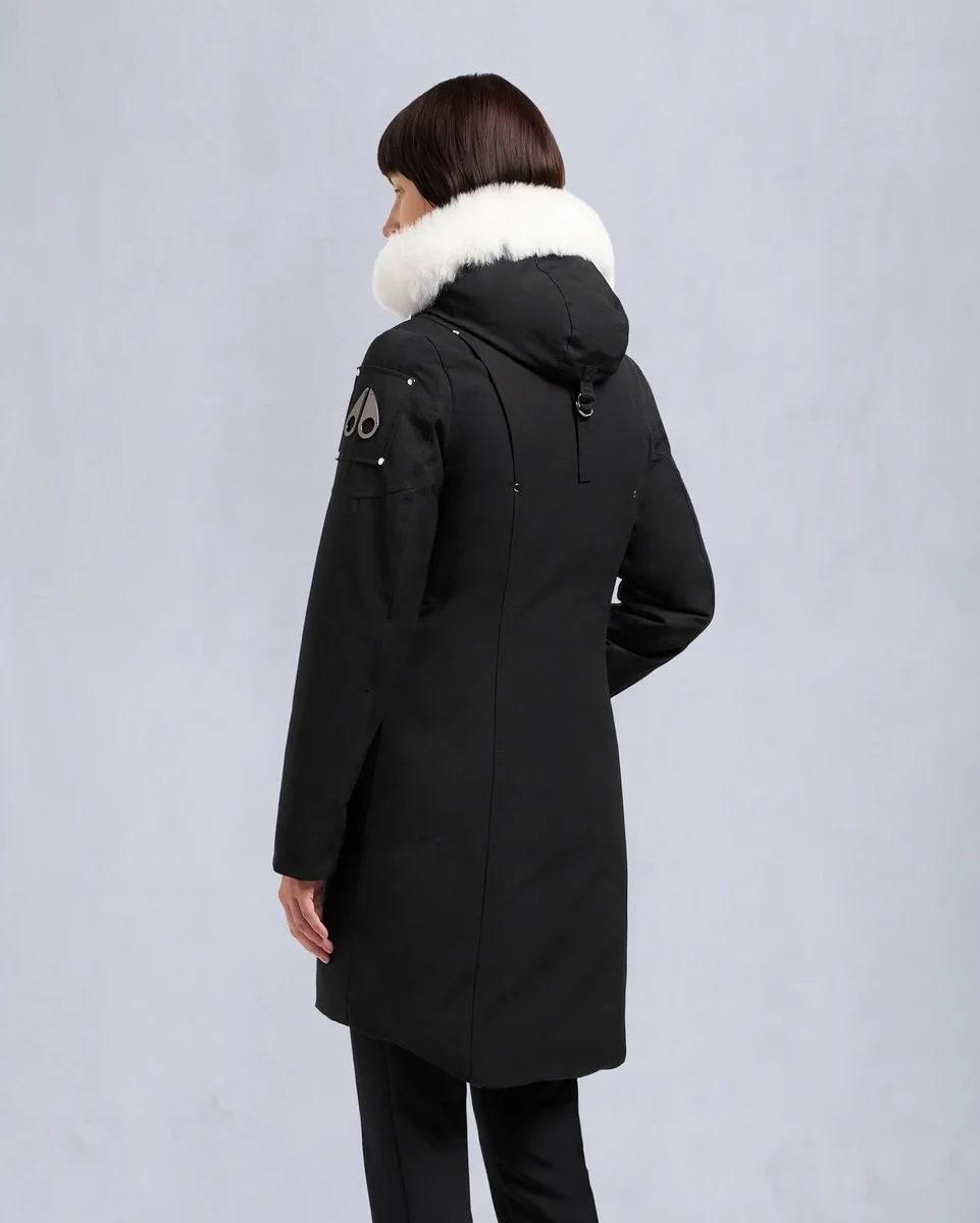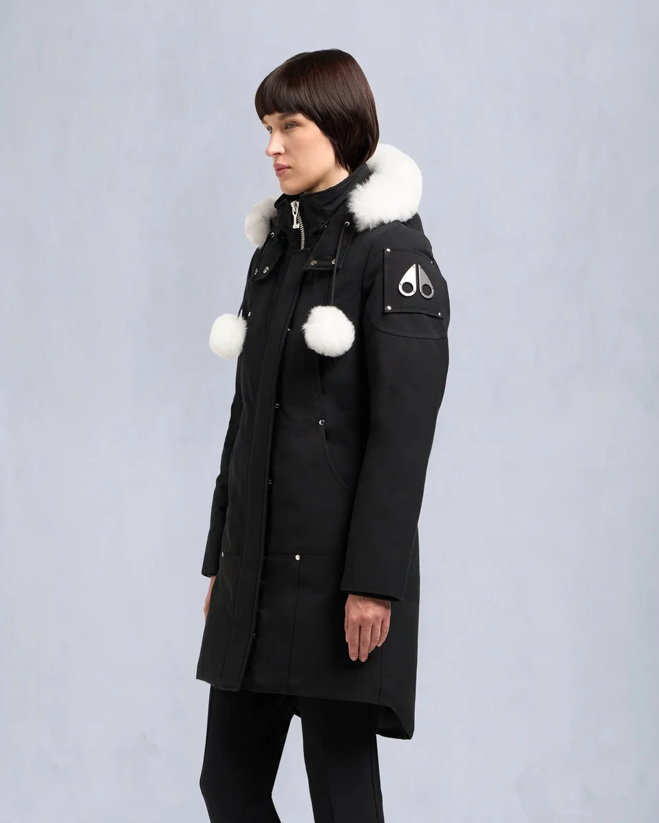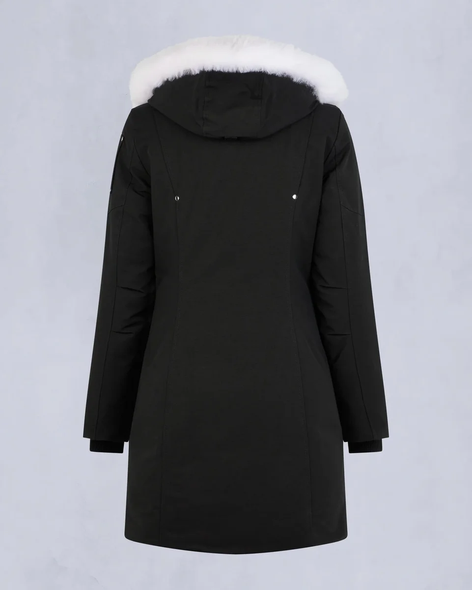 - Abnehmbare Kapuze mit festem Lammfellbesatz