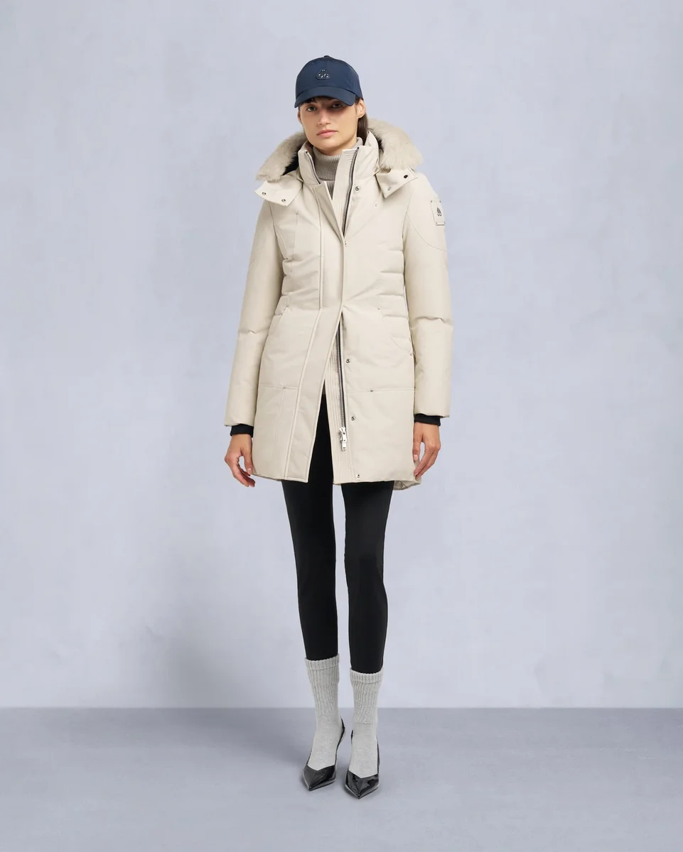 - Abnehmbare Kapuze mit abnehmbarem Lammfellbesatz