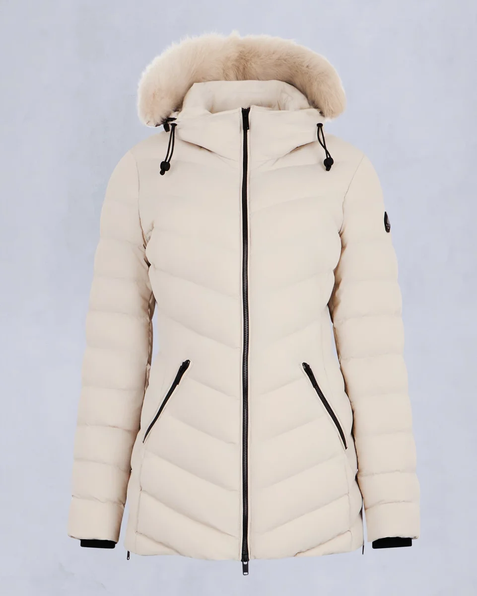 Mit ihrer stromlinienförmigen Silhouette und der abnehmbaren Kapuze mit Lammfellbesatz ist die Roselawn die perfekte Kombination aus schicker Raffinesse und leistungsstarker Oberbekleidung.