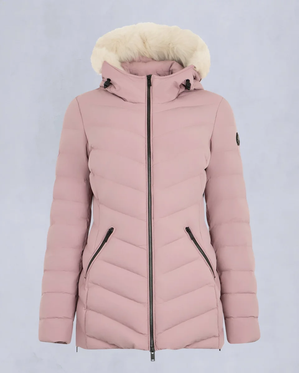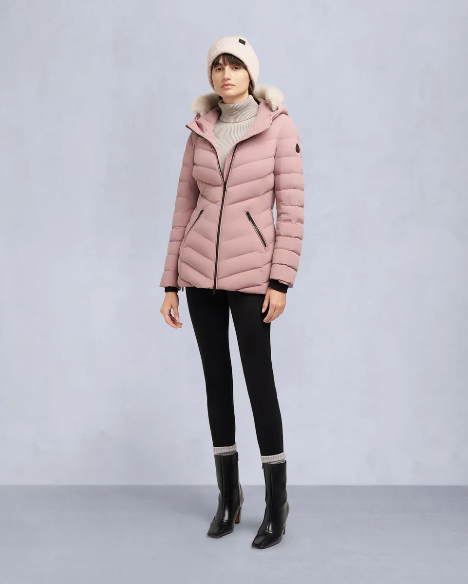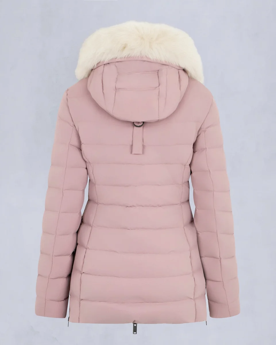 - Verstellbare Kapuze mit abnehmbarem Lammfellbesatz
