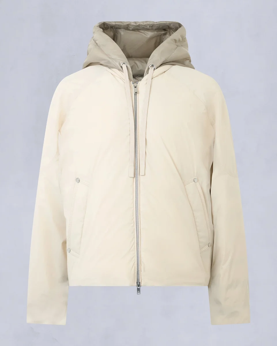 Von innen nach außen chemisch reinigen – schonendes Verfahren. Bügeln bei maximal 110 °C – ohne Dampf.