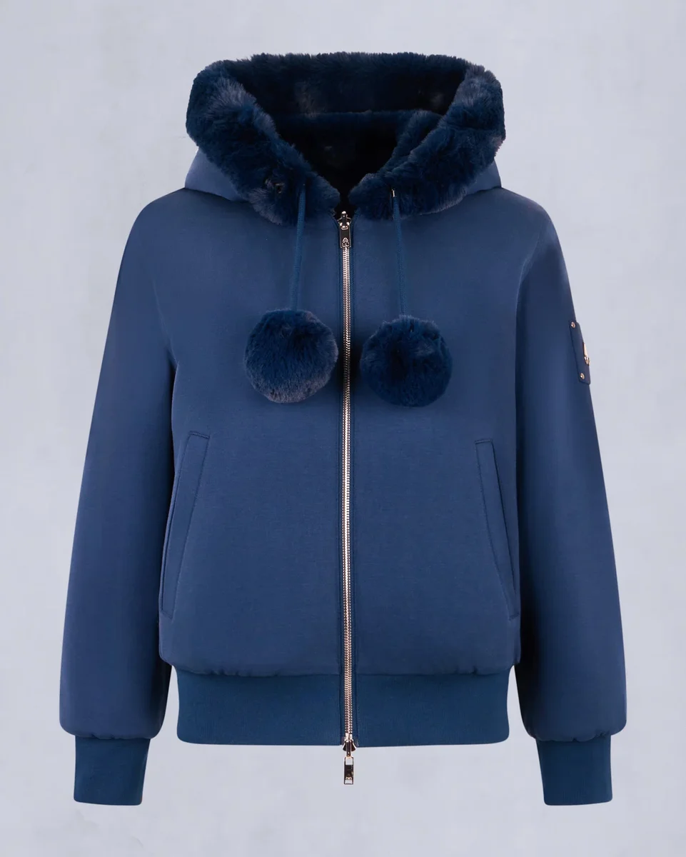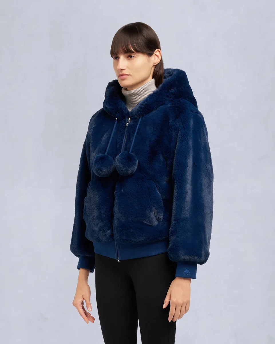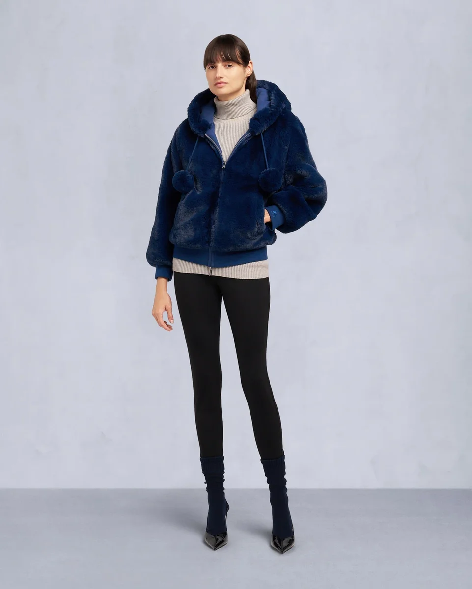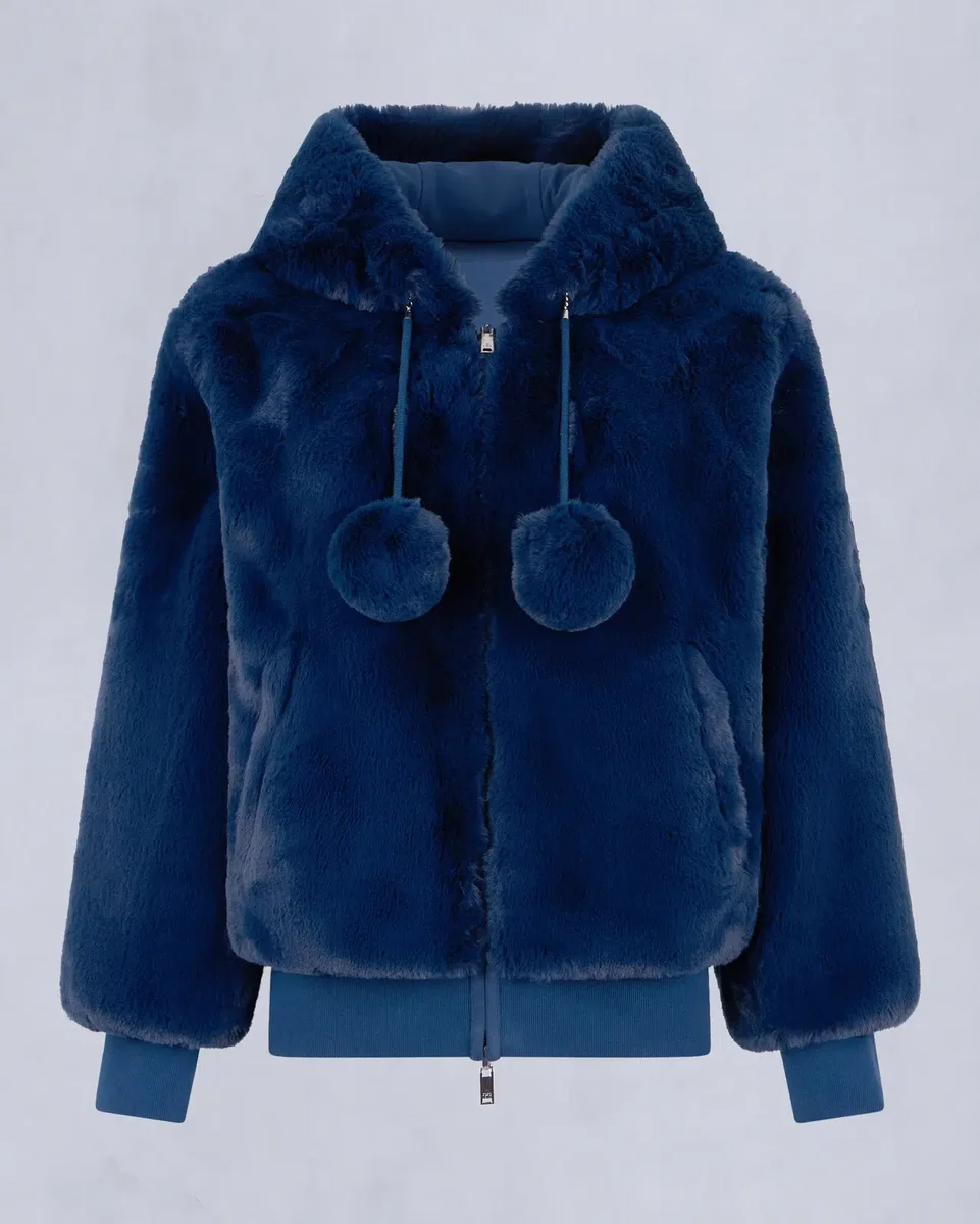 - Kapuze mit abnehmbaren Kunstfellbommeln