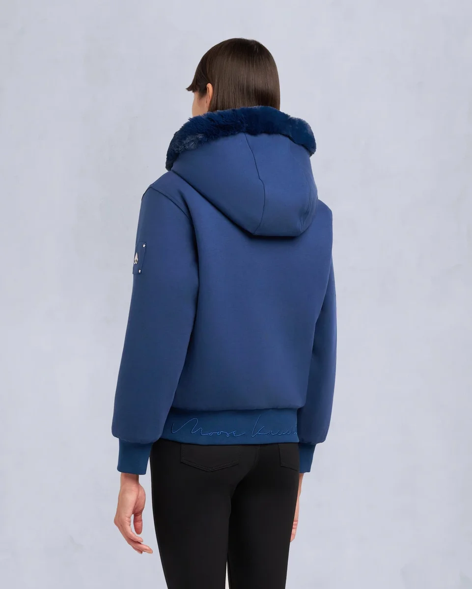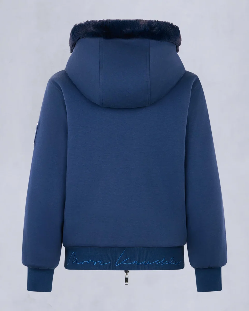 - Seite B: Moose Knuckles Schriftzug am Saum