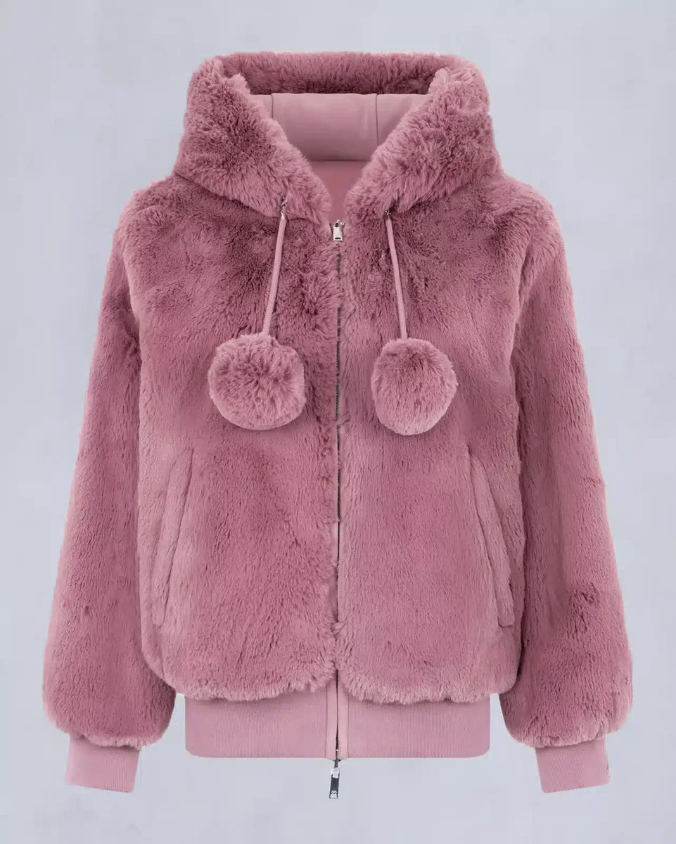 - Kapuze mit abnehmbaren Kunstfellbommeln