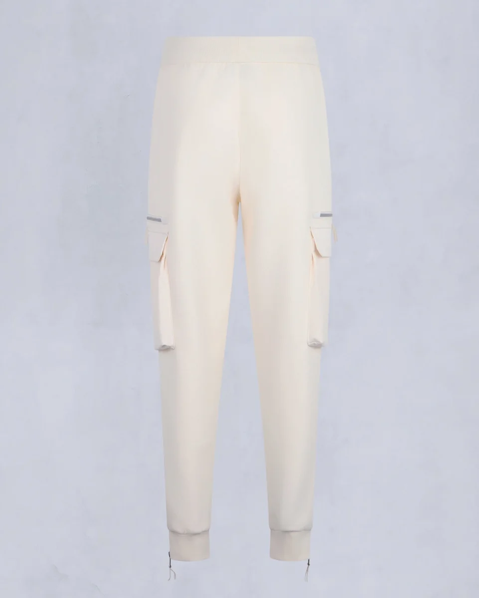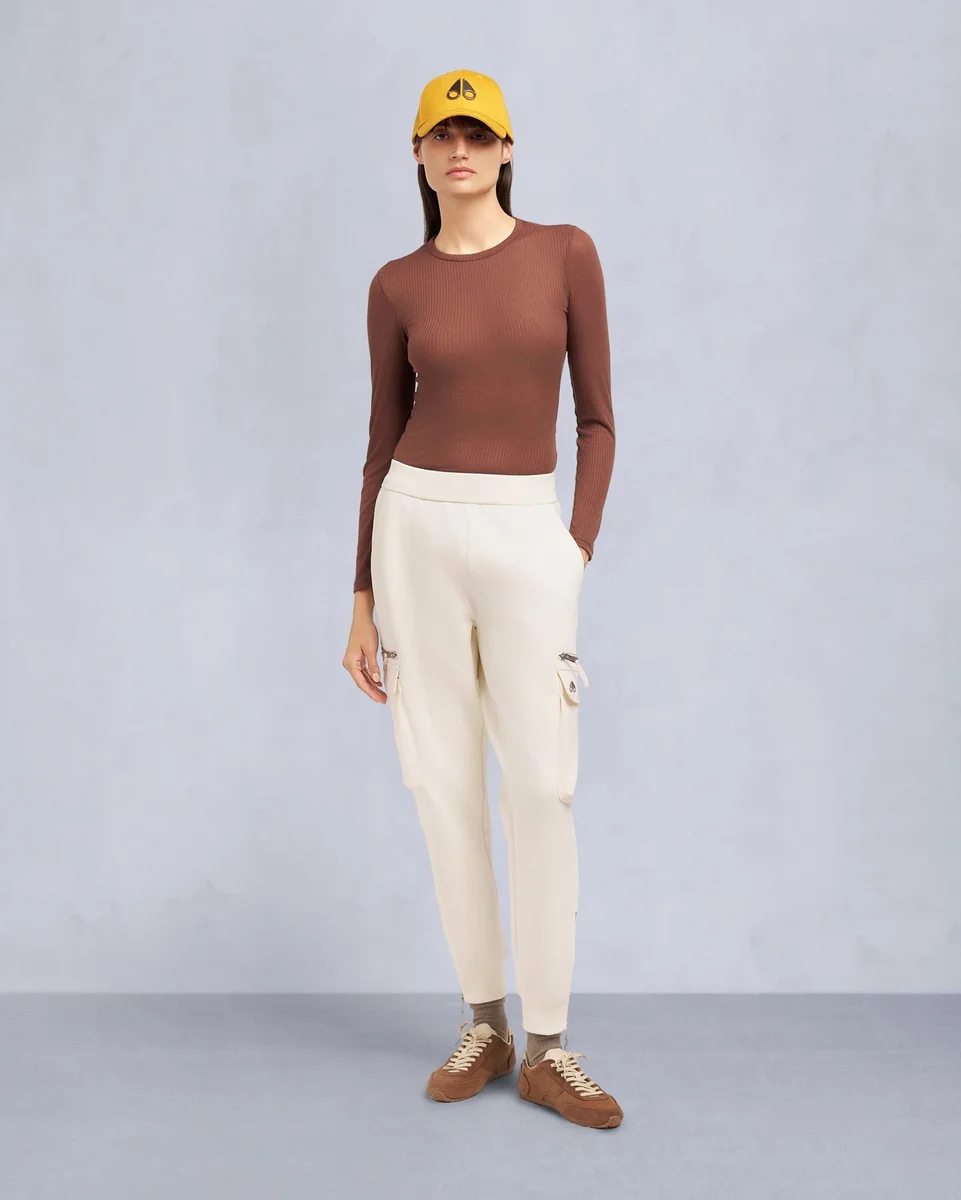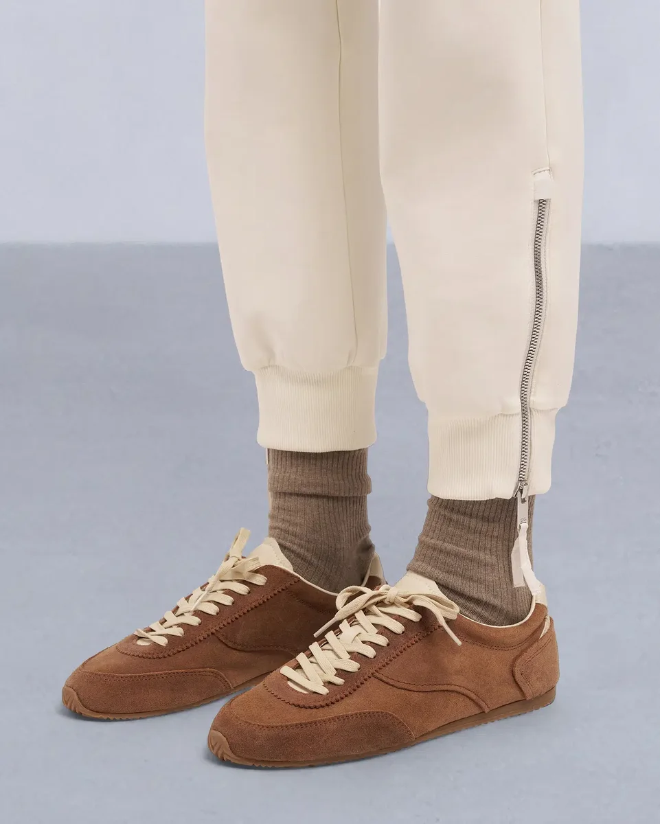- Rippstrickbund mit Kordelzug innen, gerippte Bündchen und Reißverschlussöffnung am Hosenbein