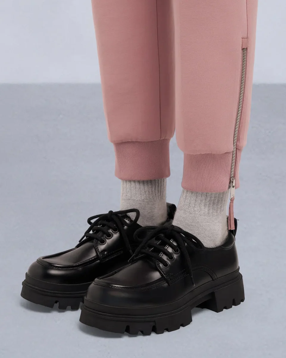 • Rippstrickbund mit Kordelzug innen, gerippte Bündchen und Reißverschlussöffnung am Hosenbein