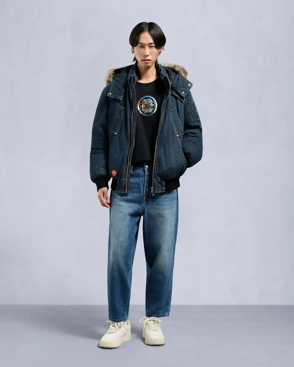 - Abnehmbare Kapuze mit abnehmbarem Lammfellbesatz