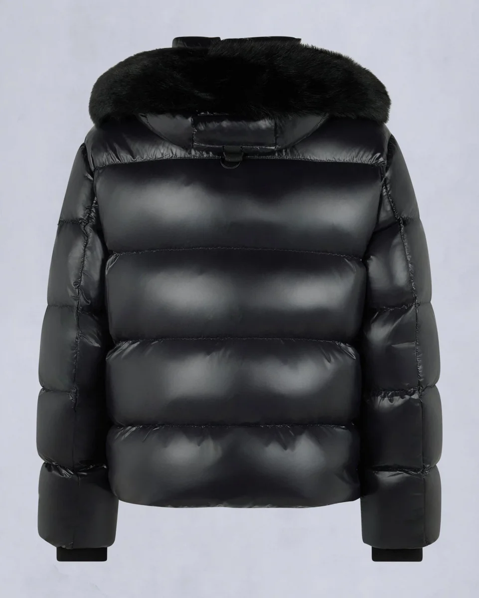 - Abnehmbare Kapuze mit abnehmbarem Lammfellbesatz