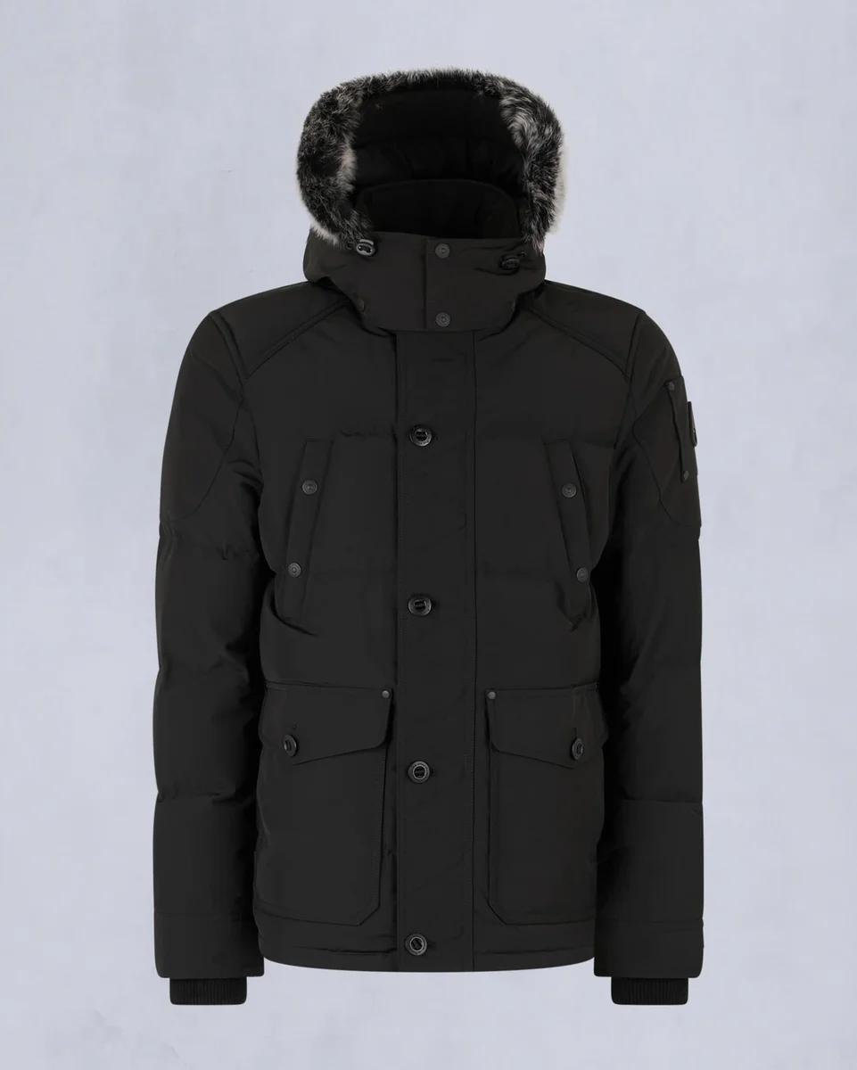 - Abnehmbare Kapuze mit Lammfellbesatz