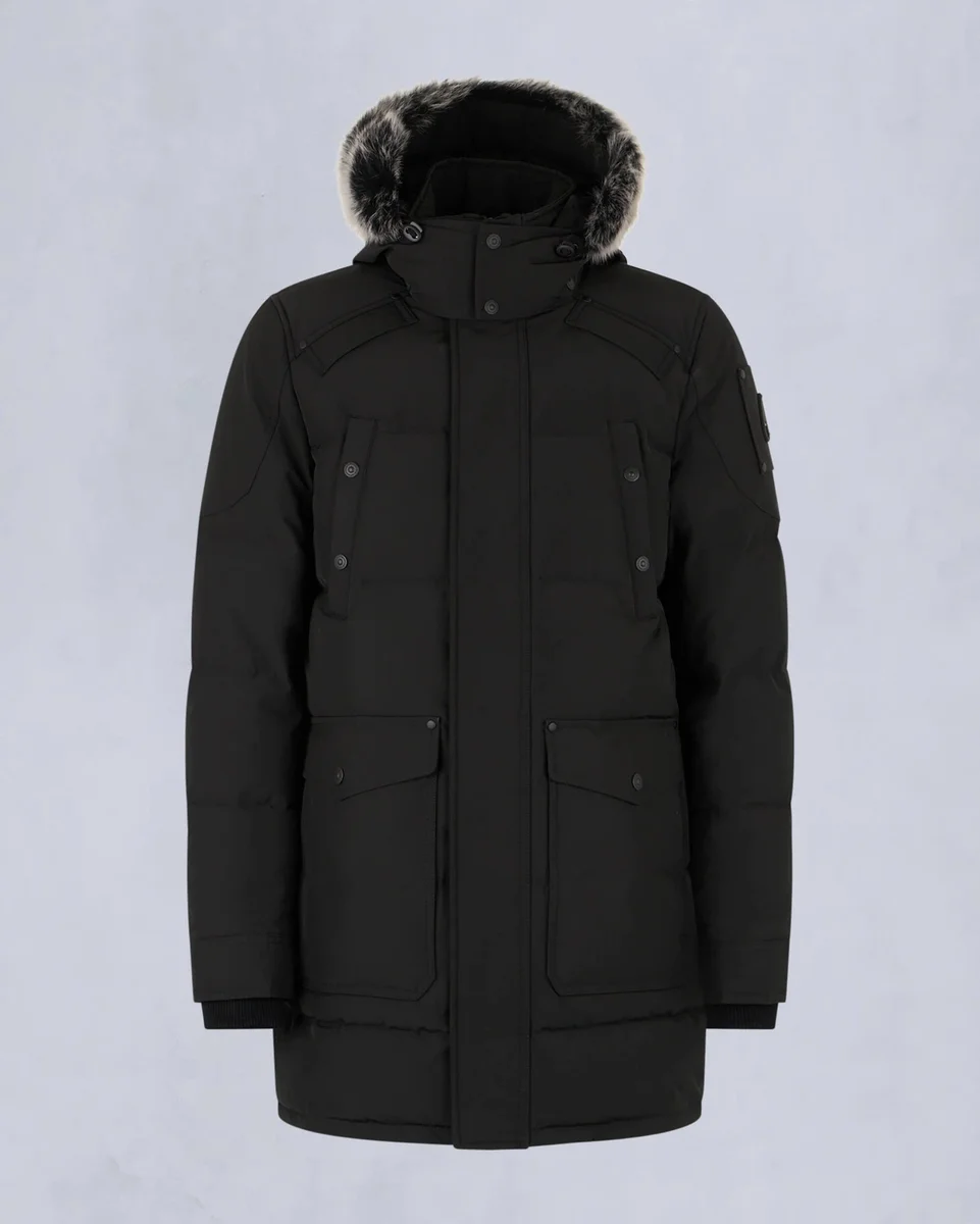 - Abnehmbare Kapuze mit Lammfellbesatz
