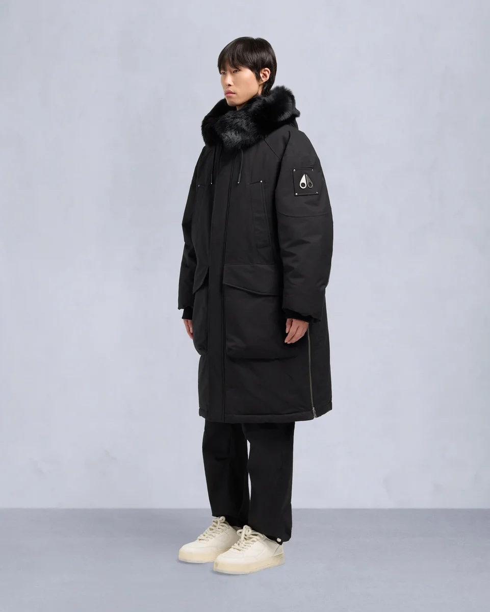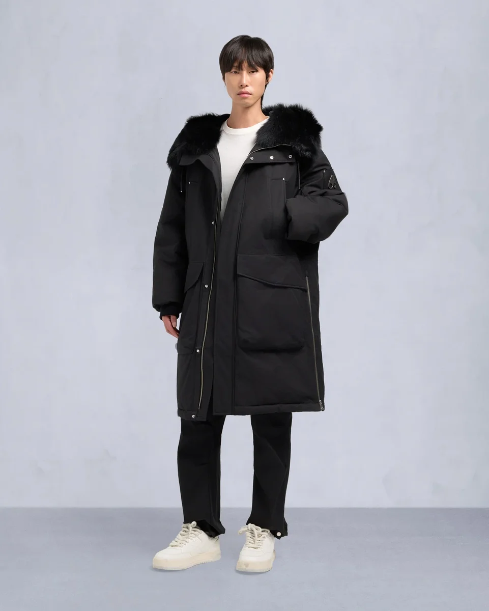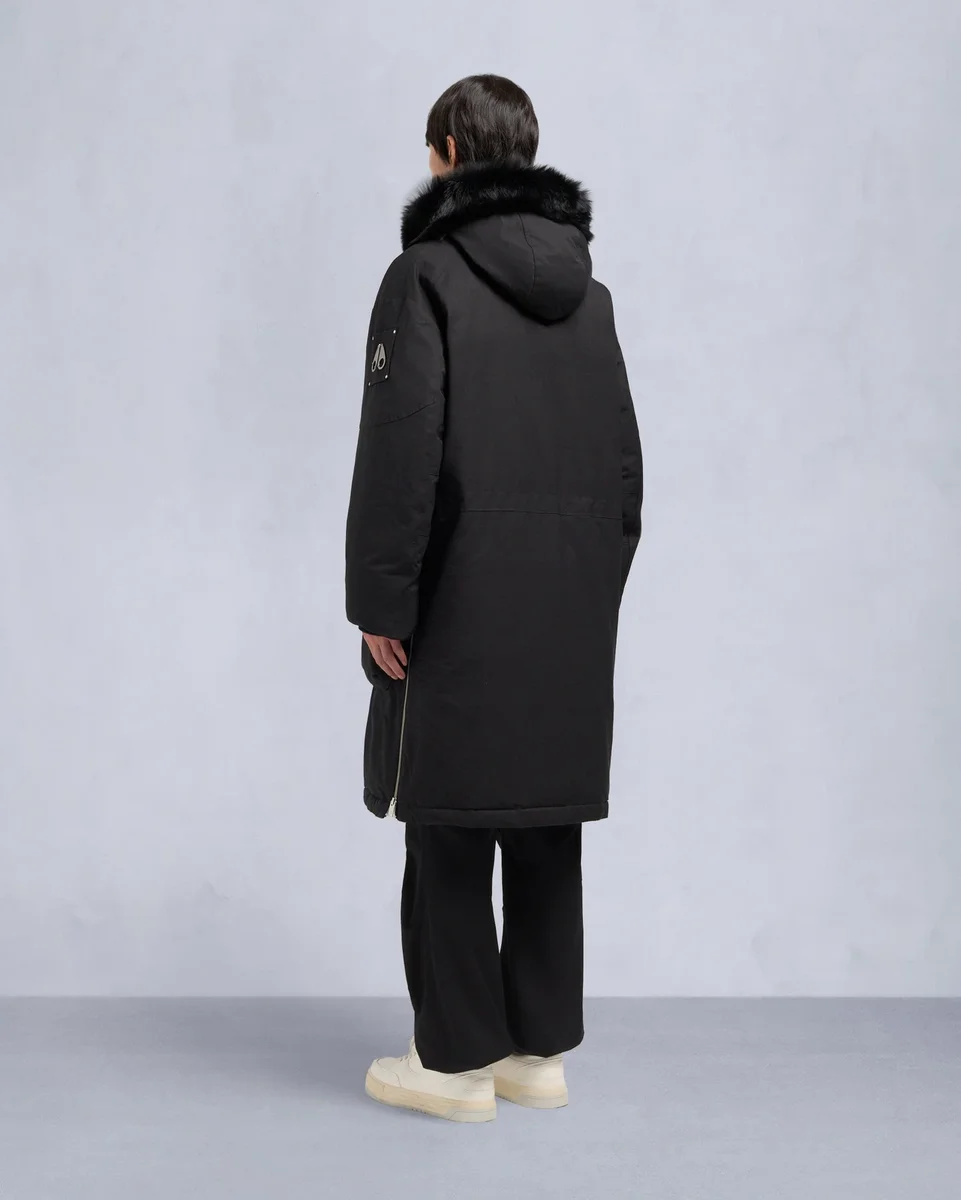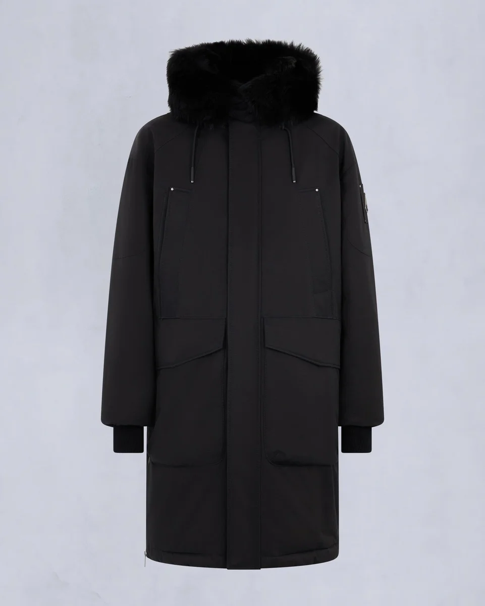 - Verstellbare Kapuze mit nicht abnehmbarem Lammfellbesatz
